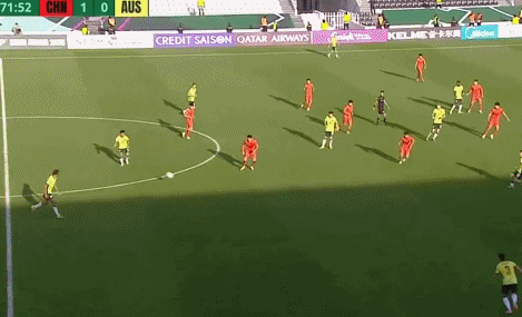 第三個鏡頭是第82分鐘,澳大利亞長傳球發(fā)動進(jìn)攻,邊路防守球員被撞開后,彭嘯再次補(bǔ)防出現(xiàn)在最關(guān)鍵的位置,大腳解圍化解危險,力保球門不失。如果彭嘯沒有及時補(bǔ)位的話,澳大利亞就很可能形成單刀機(jī)會,彭嘯整場比賽都保持著極高的專注度。